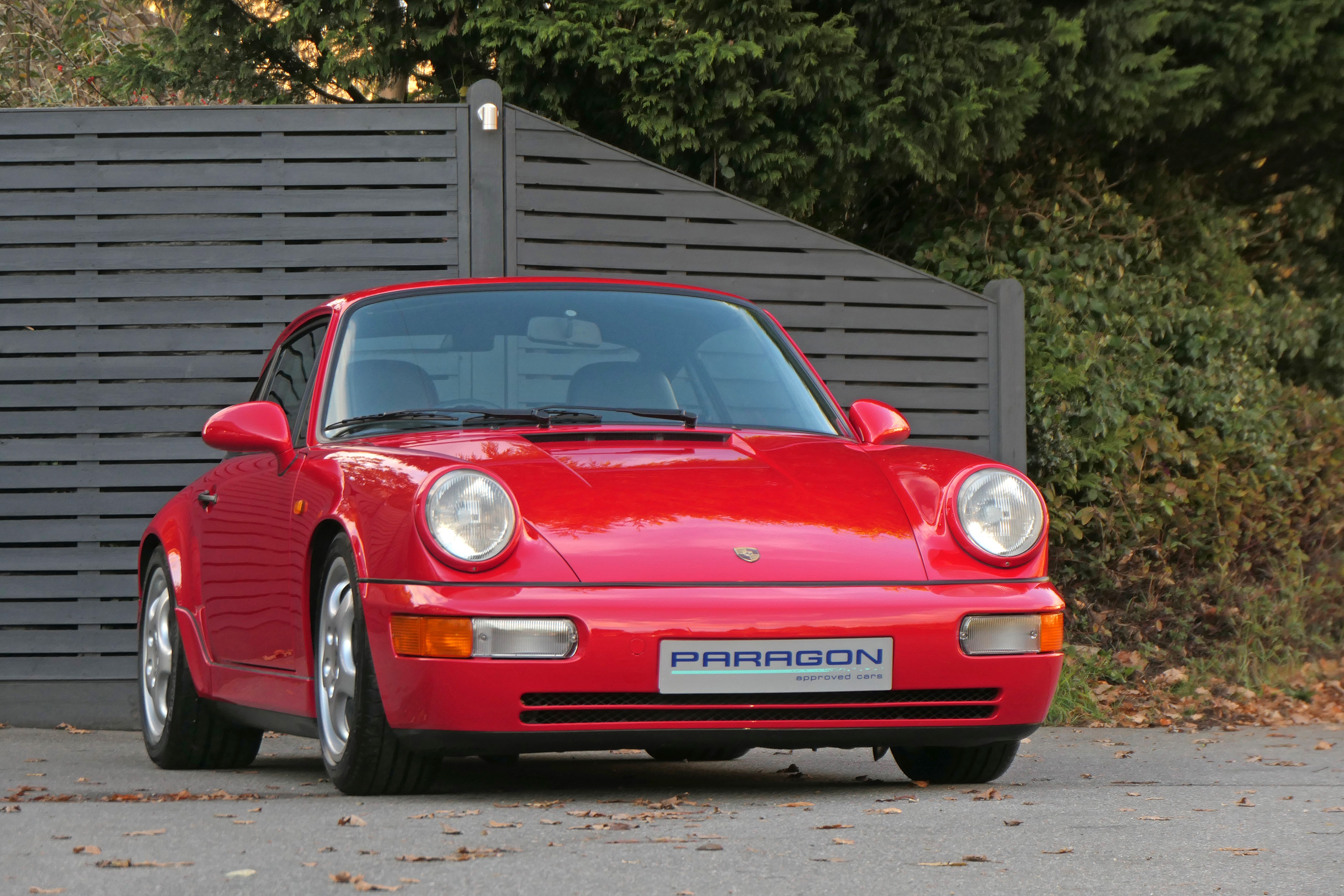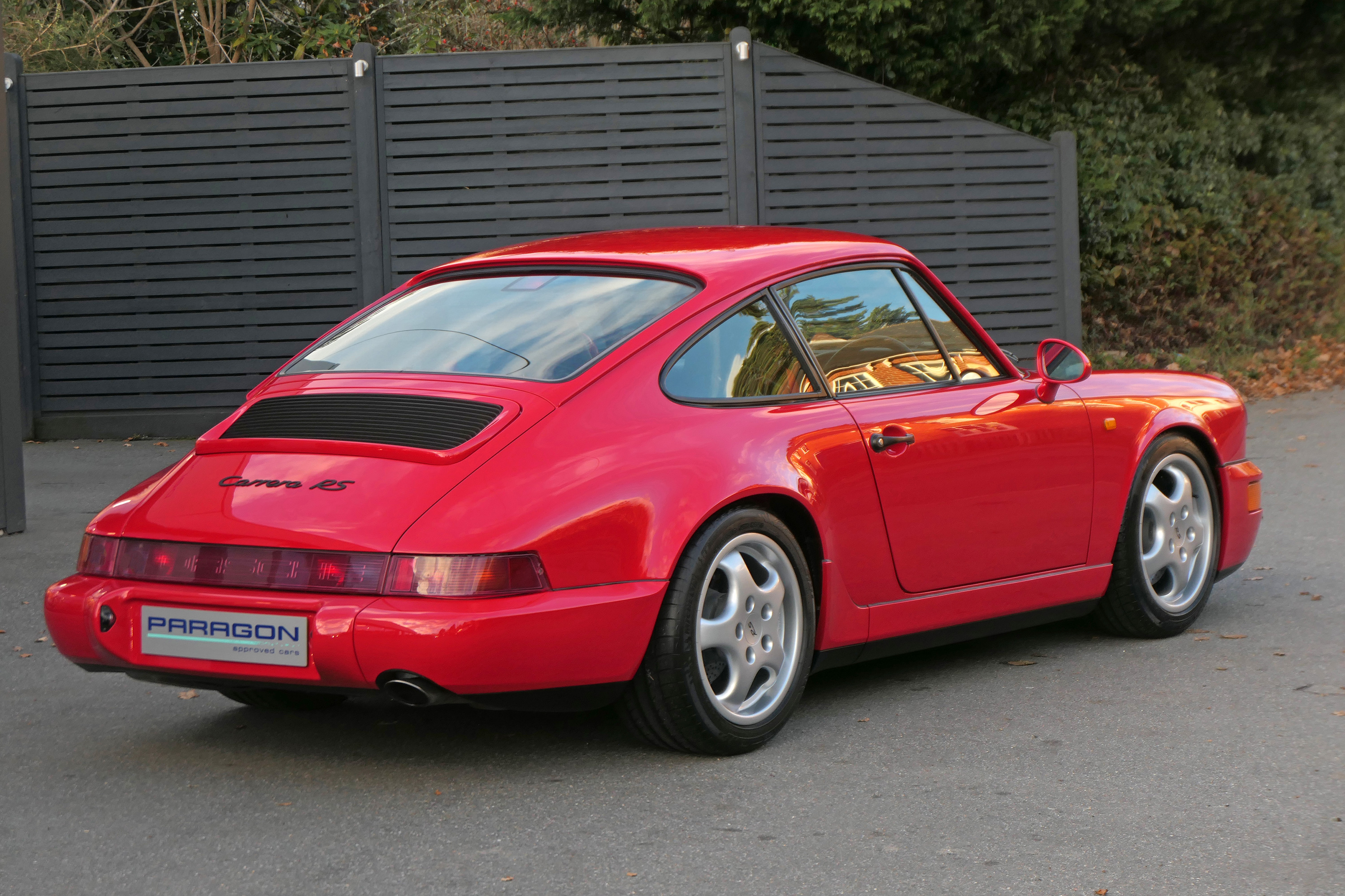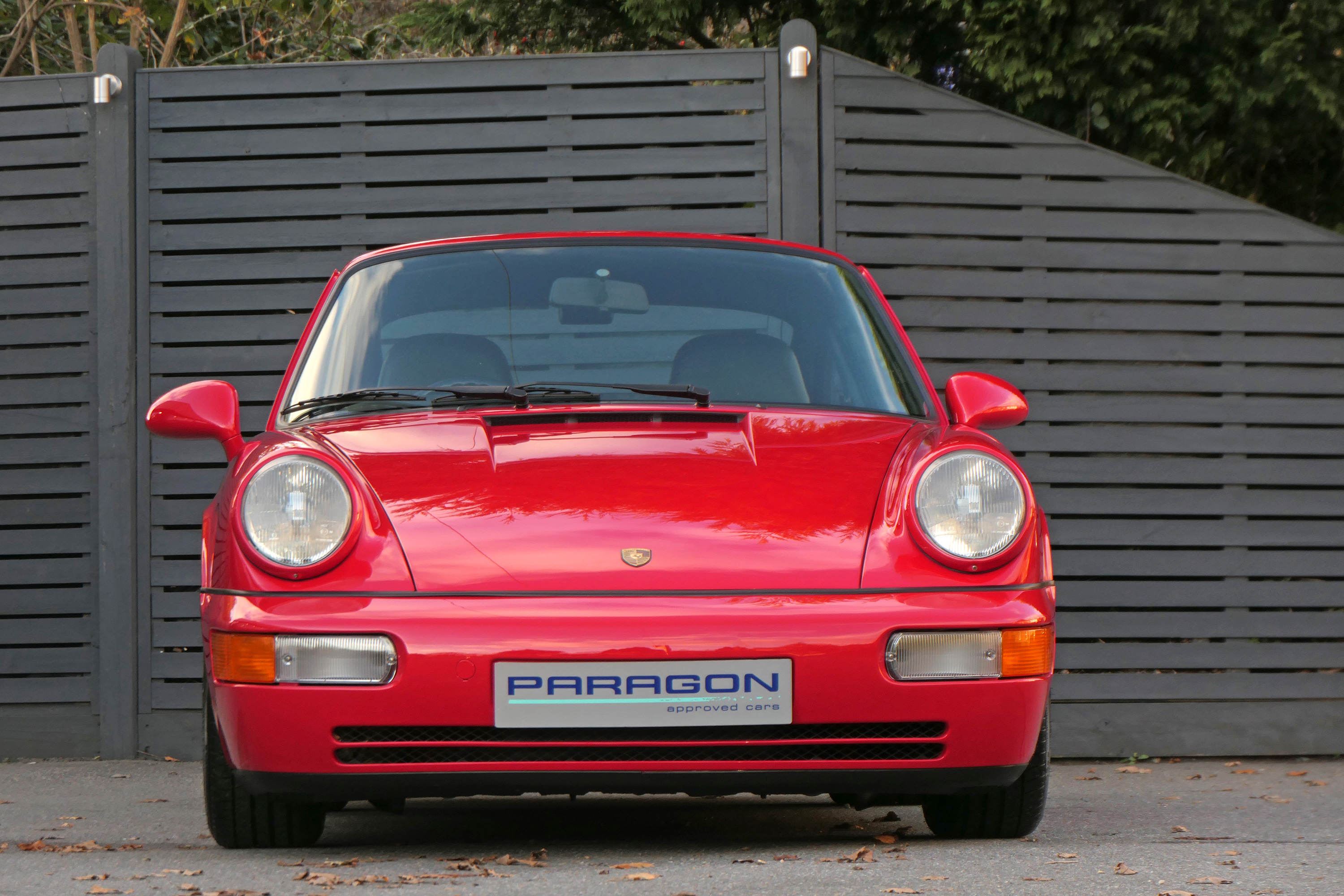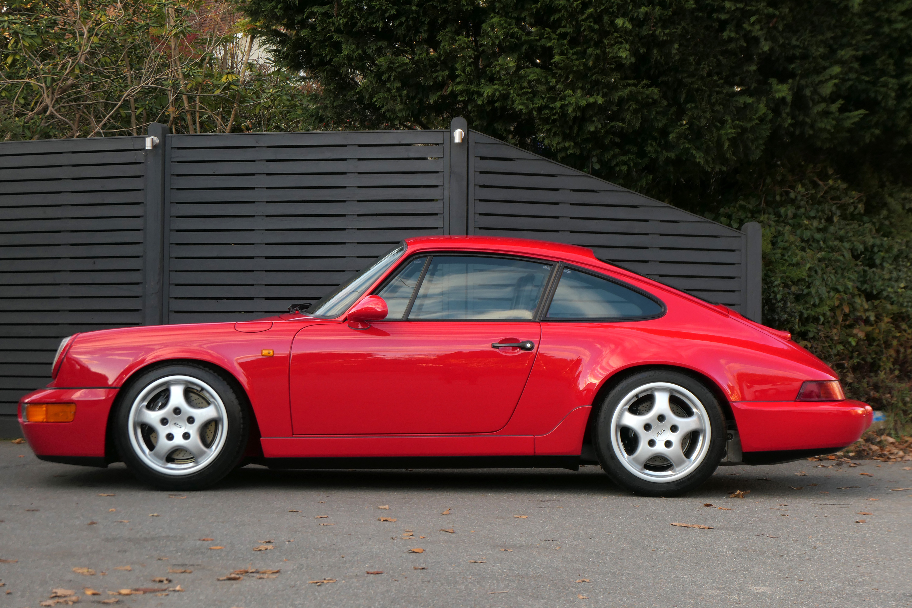 This 911 Carrera RS (964) has the 5-speed manual gearbox and is presented in Guards Red with triple tone leather bucket seats.