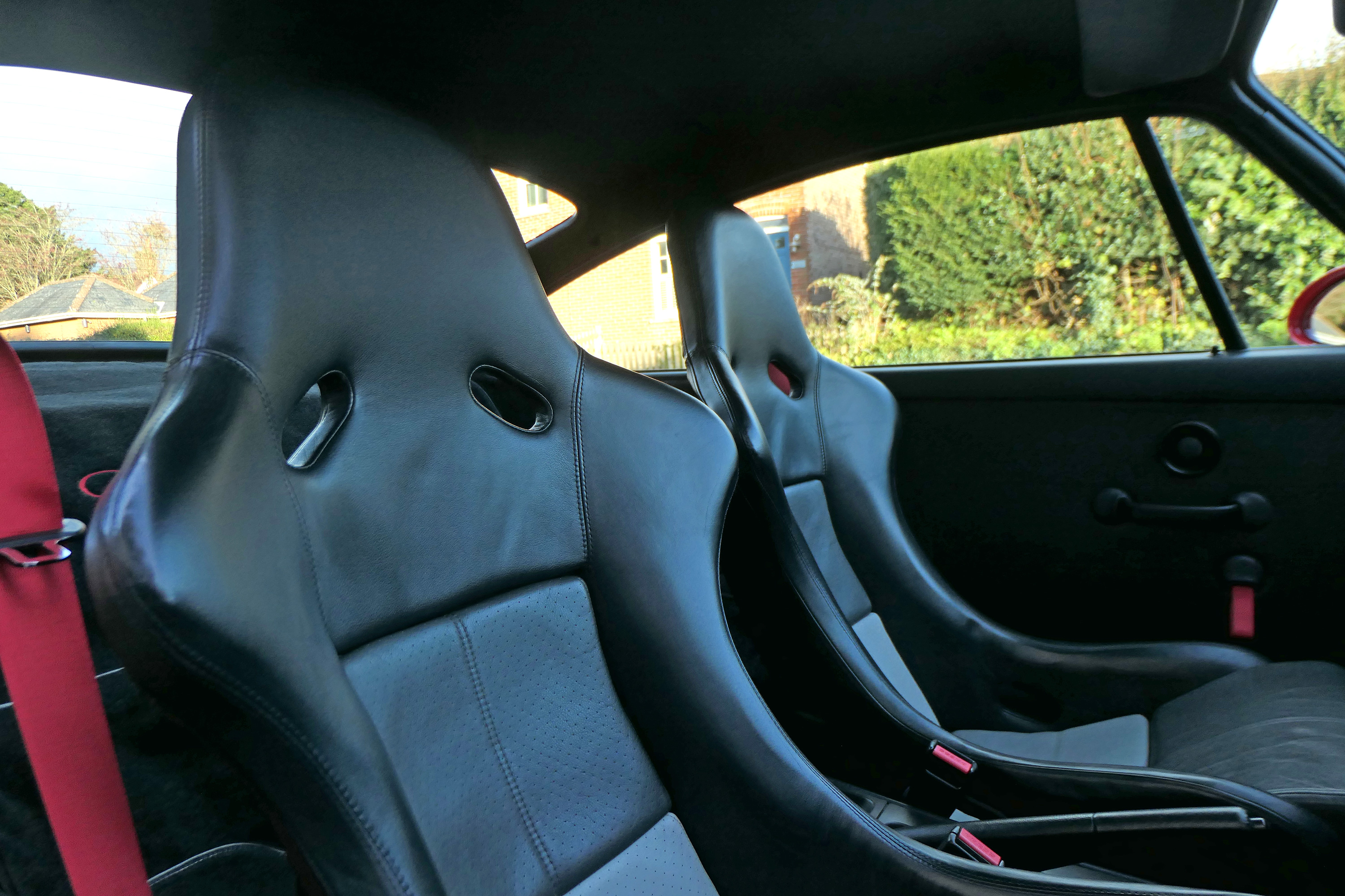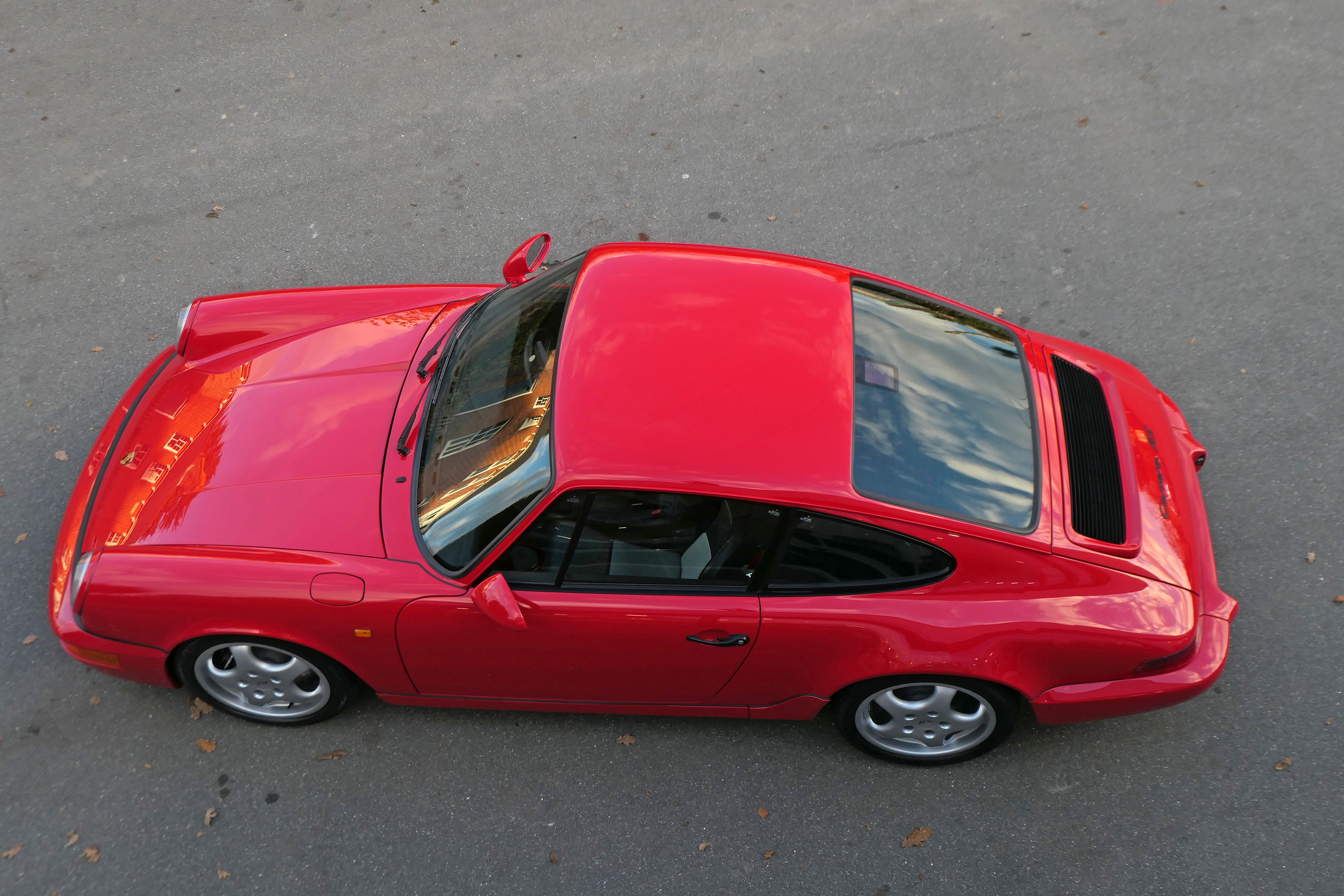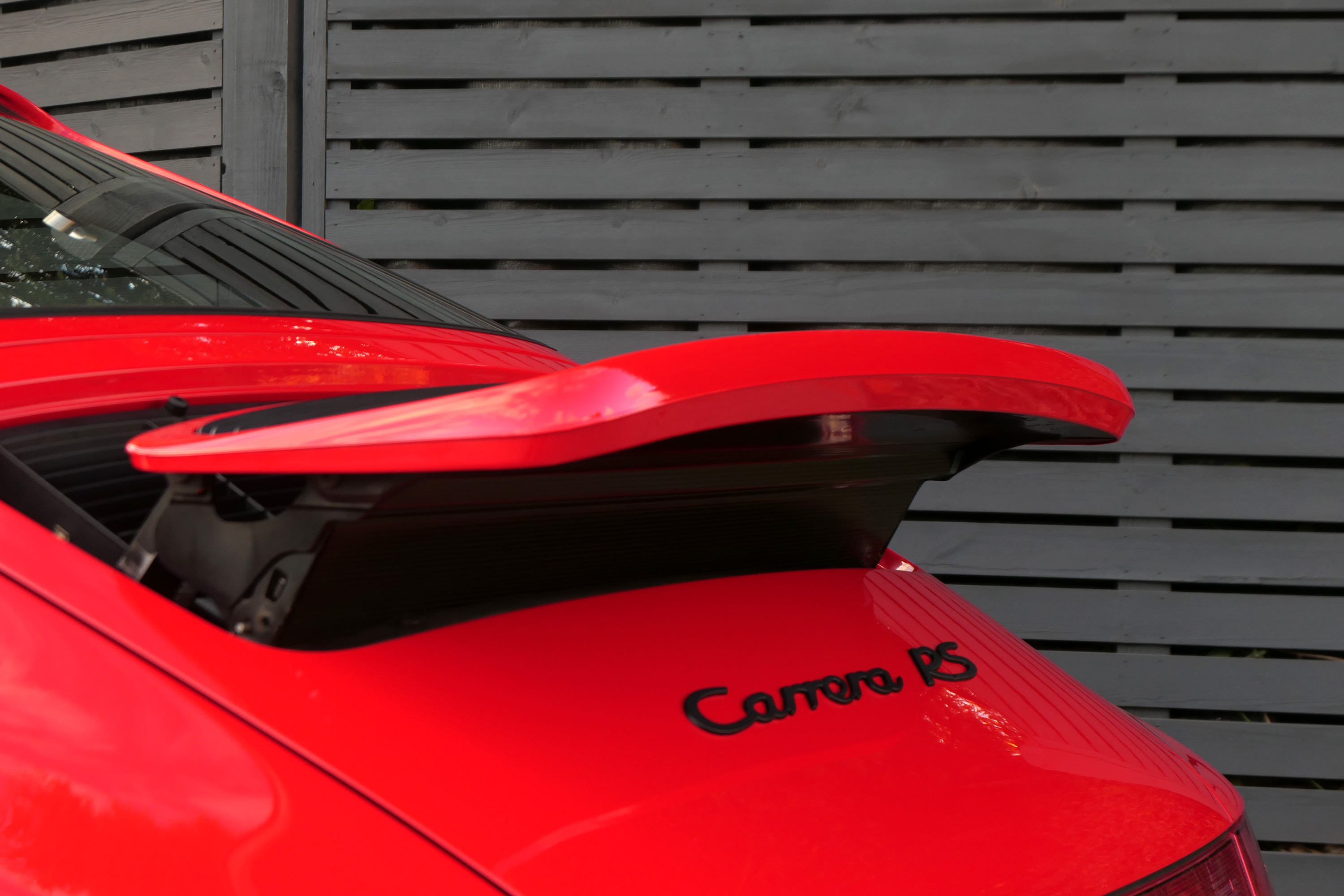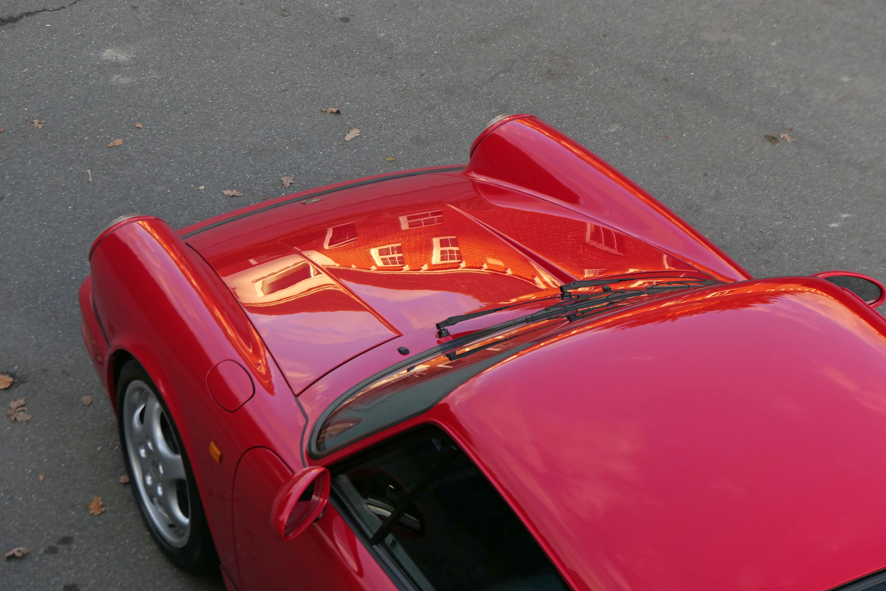 This 911 Carrera RS (964) has the 5-speed manual gearbox and is presented in Guards Red with triple tone leather bucket seats.