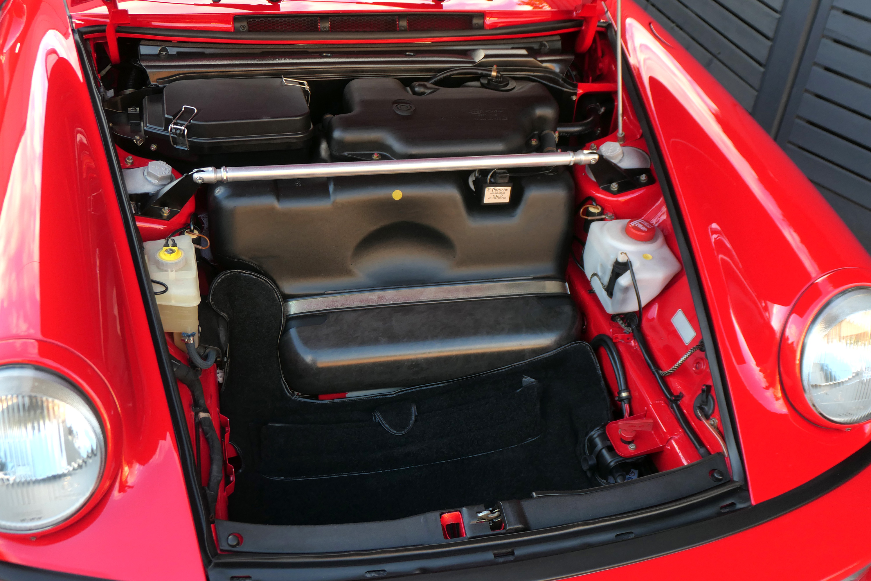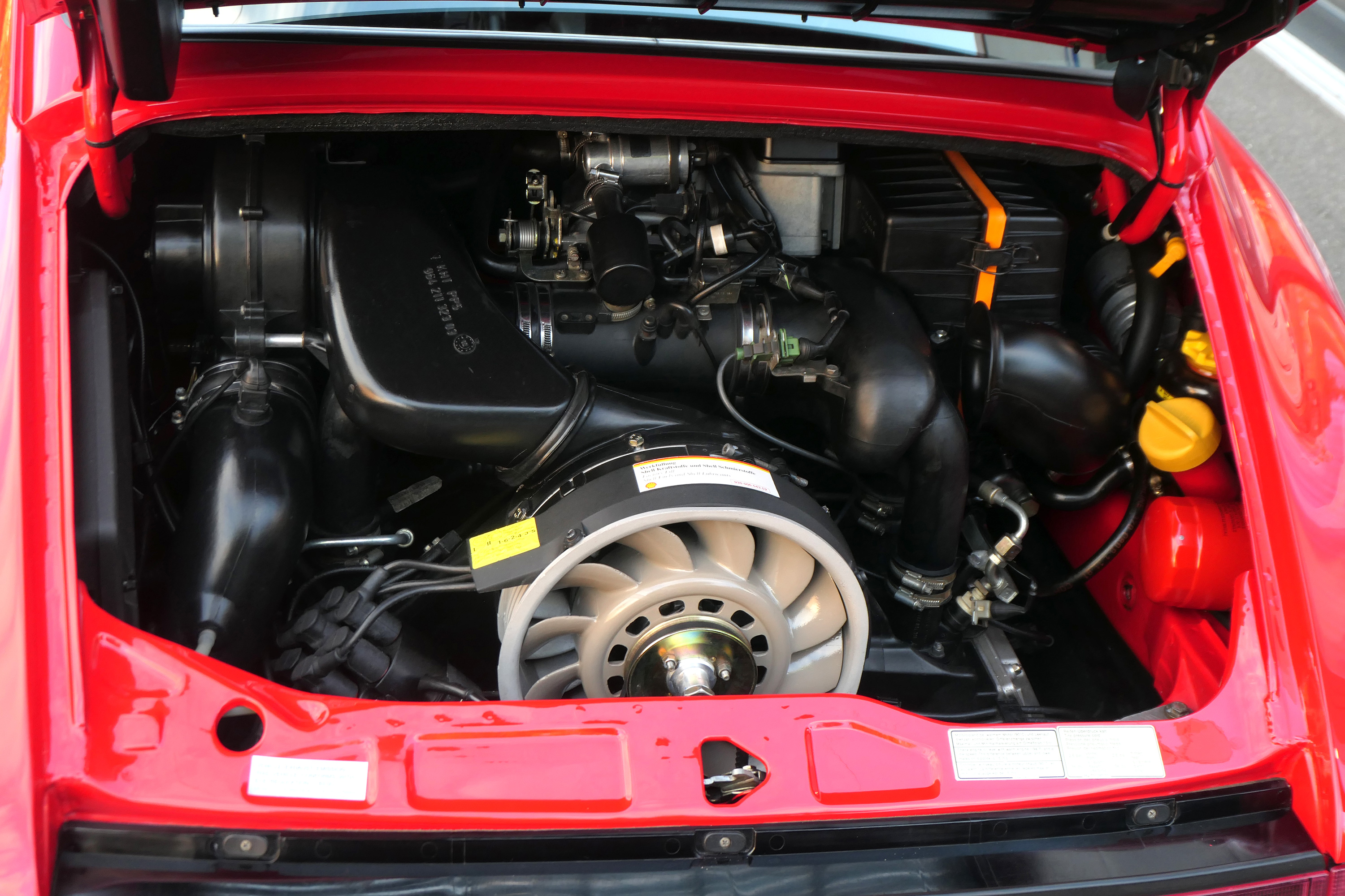 All RS models were fitted with the same blue printed M64/03 air-cooled, dry sump horizontally opposed SOHC six-cylinder engine which was modified to produce 260 bhp at 6,100 RPM with 240 foot-pounds of torque at 5,000 RPM. This engine incorporated carefully matched pistons and cylinders, Bosch electronic engine management and sequential fuel injection. Power was delivered via a single-mass lightweight flywheel to a G50/10 five speed gearbox with steel synchroniser rings, altered shift sleeves and taller first and second gears. A ZF asymetrical limited-slip diff delivered 20 percent lockup under load and 100 percent lockup under braking.
