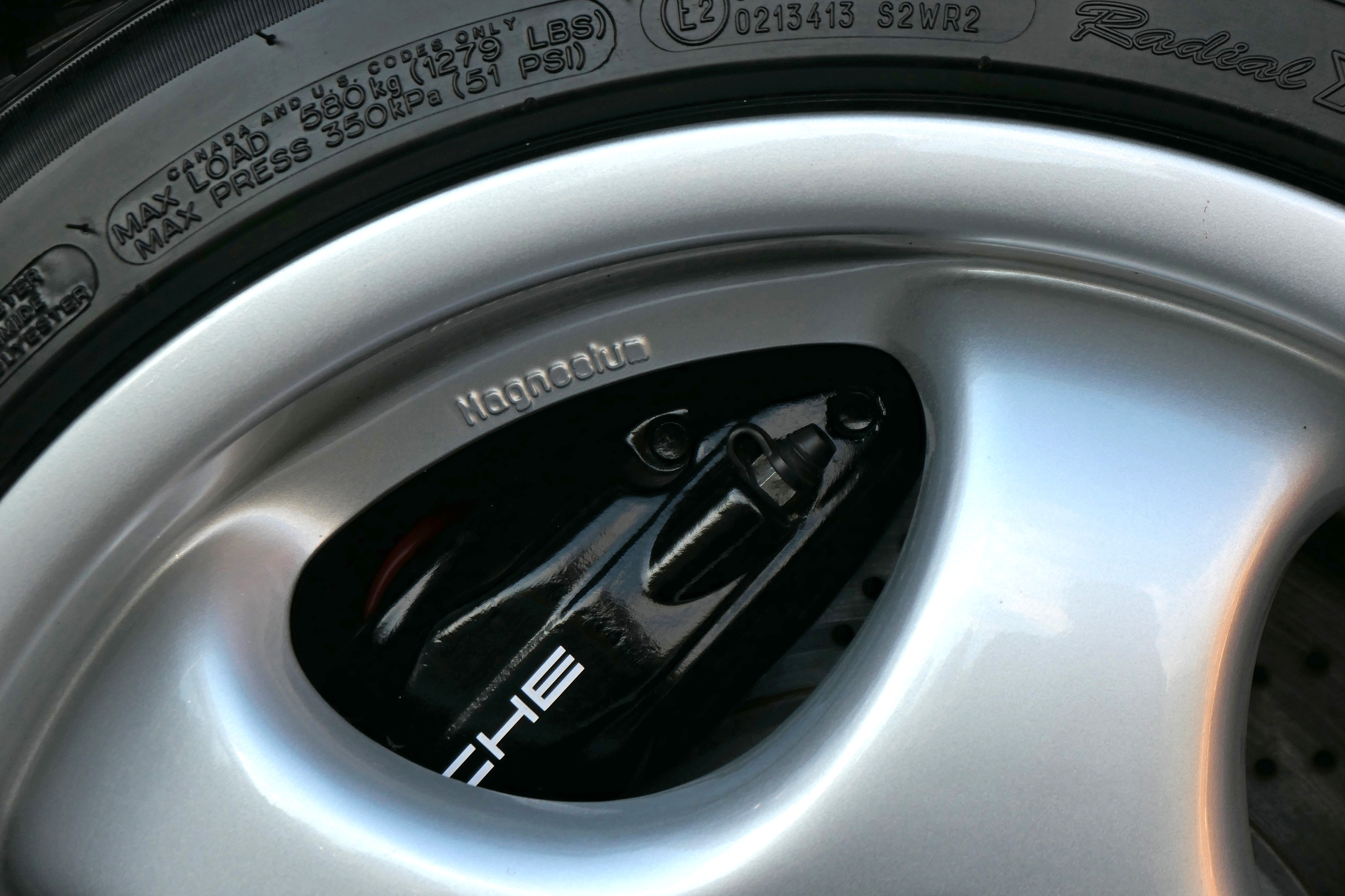 The suspension offered a much lower ride, reduced by 40mm, with a stiffer spring and damper setup than a standard Carrera 2. Front and rear suspension top mounts were all rose jointed for much more direct control and adjustable anti-roll bars were fitted front and rear with 5 settings on the front and 3 settings on the rear.