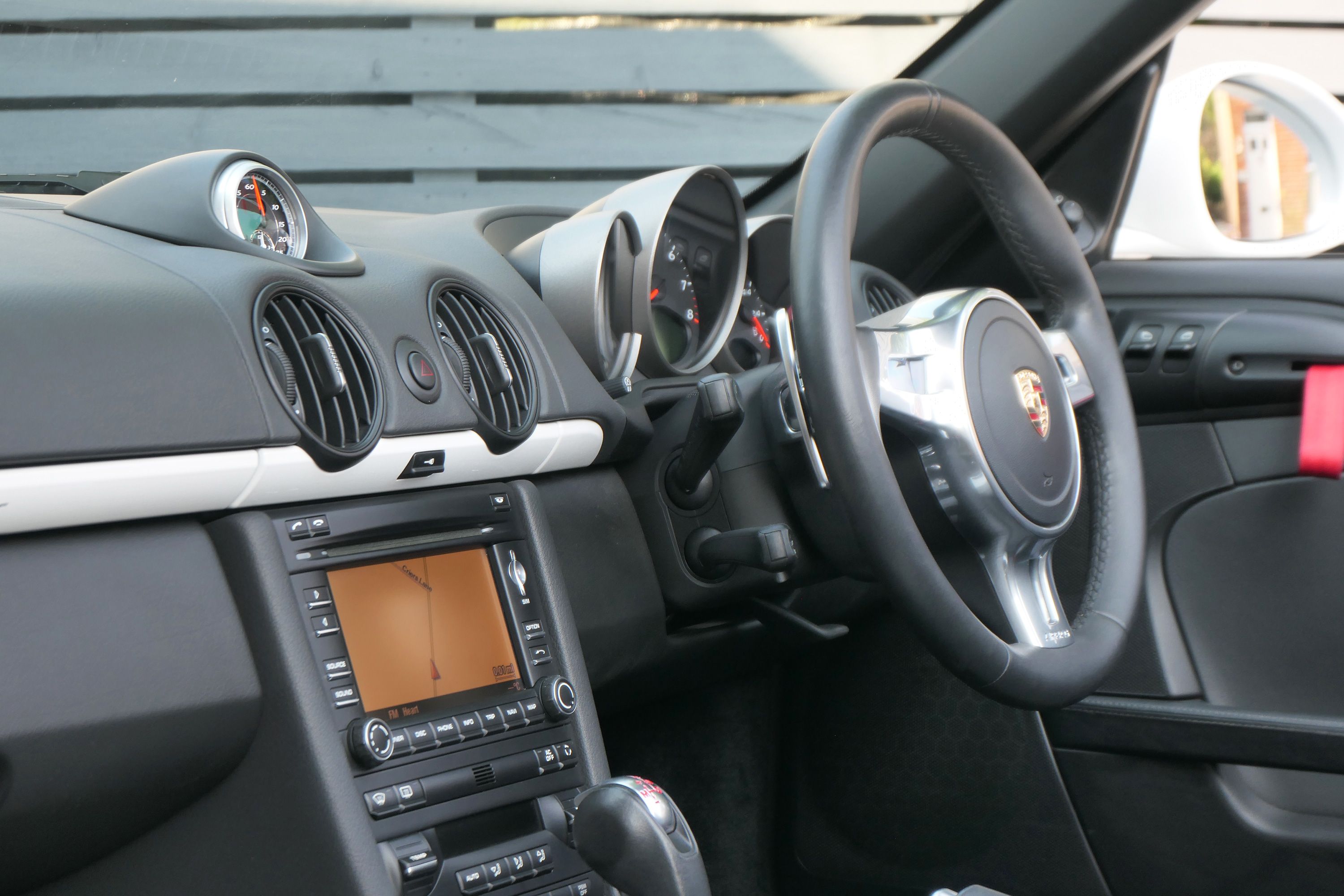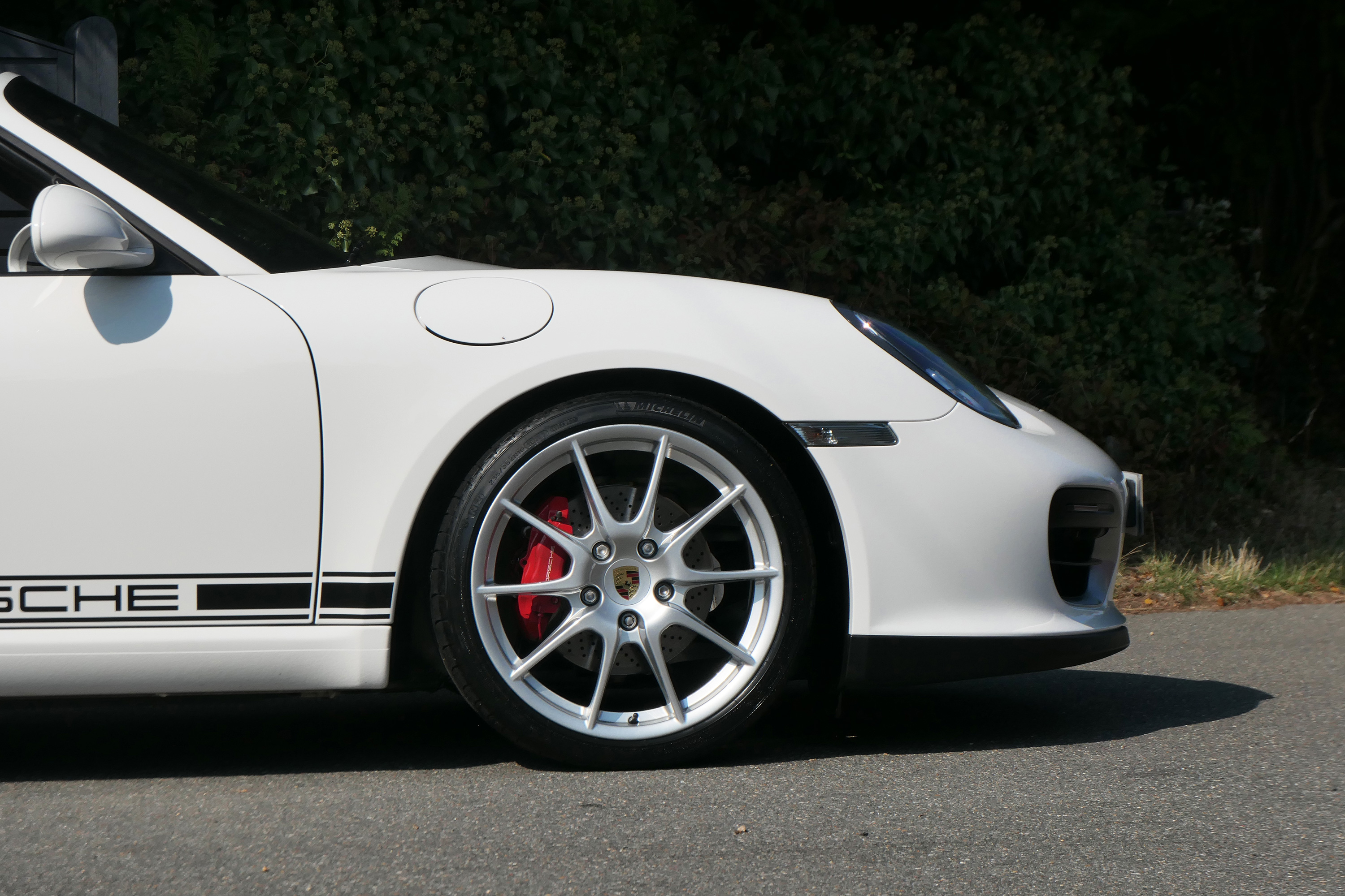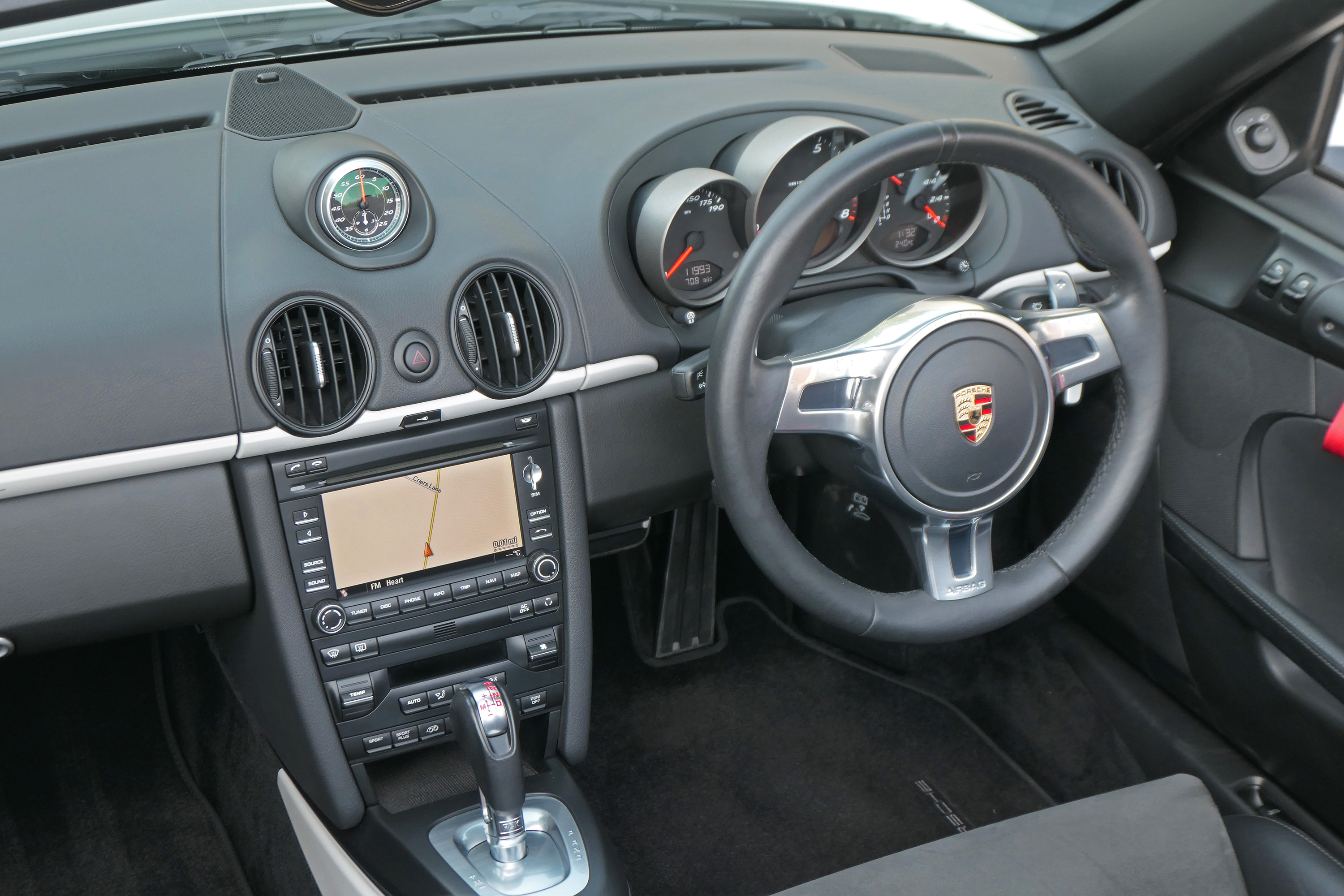 Factory-fitted options include touchscreen satellite navigation, the 7-speed PDK gearbox with Sport Design steering wheel, Guards Red seat belts, a switchable sports exhaust, rear parking sensors, the Sport Chrono Pack with Sport Plus and Bluetooth phone.